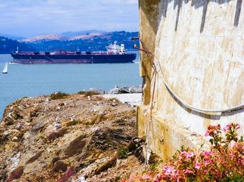 Keywords: alcatraz prison san francisco california island ship sea ocean water ships bay harbor port boat freighter sailing mountains hills
