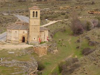 Keywords: alcazar monastery spain old town castile historically building segovia wall castle tower church steeple flag landscape