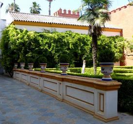 Keywords: alcazar park garden ceramic pots wall plant seville