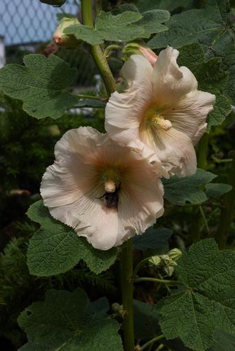 Keywords: Alcea rosea B.jpg Photo taken in Belgium Alcea rosea Stokroos Hollyhock Stockrose Rose trémière Own 2007-06-19 Wouter Hagens Insects on Alcea rosea flowers