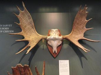 | Keywords: Alces alces antlers - Finnish Museum of Natural History - DSC04524.JPG en Exhibit in the Finnish Museum of Natural History Helsinki Finland Photography was permitted in the museum without restriction Daderot 2012-08-16 02 25 44 Daderot cc0 cc0 Skeletons in the Finnish Museum of Natural History Alces alces skulls |