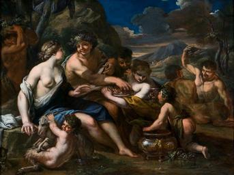 | Keywords: Alessandro Rosi - Bacchanalia (ca.1670).jpg Artwork Creator Alessandro Rosi 1670 oil canvas cm 67 90 institution Private collection accession number http //www wga hu/html_m/r/rosi/bacchana html Web Gallery of Art object history credit line exhibition history http //www artliste com/alessandro-rosi/bacchanalia-2760 html artliste com PD-old-100 DEFAULTSORT Rosi Alessandro; Bacchanalia; Museum of Fine Arts Houston Alessandro Rosi Paintings of Roman mythology Bacchus Bacchante and Infant Faun |