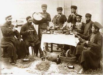 | Keywords: Alexander Engel. Feast of Karachogelians.jpg en Feast of Karachogelians ka ყარაჩ ღელების ქეიფი http //www photomuseum org ge/engel/images/10 jpg photomuseum org ge creator Alexander Engel - 1890 1918 Source http //www photomuseum org ge/engel/10_en htm photomuseum org ge en <br/> http //www photomuseum org ge/engel/10_ge htm photomuseum org ge ge PD-old Photos by Alexander Engel Historical images of Tbilisi Supra Male fur headgear Fur fashion in 1899 | ||||
