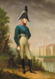 | Keywords: Alexander I by S.Shchukin (1806, priv.coll).jpg STEPAN SEMIONOVICH SHCHUKIN 1758-1828 signed in Latin m l and dated 1806 oil on canvas PROVENANCE Acquired in 1807 for the first Earl of Malmesbury by his secretary James Tyrrell Ross White while employed in Lord Granville's Embassy at St Petersburg Private English Collection since 1987 LITERATURE AND REFERENCES Antoine Cheneviere Russian Furniture The Golden Age 1780-1840 Weidenfeld and Nicholson 1988 ill p 177 CATALOGUE NOTE This grand yet intimate cabinet portrait depicts Emperor Alexander I standing at ease in full army uniform of the Imperial Preobrazhensky Regiment In the background is Kammenostrovsky Island Palace built for the Tsar while he was still a boy to be his future St Petersburg residence His pose directly recalls the famous portrait of his father Emperor Paul I painted ten years previously by Shchukin see fig 1 The offered lot is said to be one of several similar versions one being in the State Hermitage Museum St Petersburg and another in the Queen ™s collection England Stepan Shchukin was an orphan who learned to draw while living in a hospice for homeless children in Moscow in the mid 1760s Despite these humble beginnings a combination of talent and effort earned him a place at the Imperial Academy of Arts in St Petersburg where he studied portraiture under Dmitri Levitsky There he won a scholarship to continue his studies in Paris from 1782-6 where he received further instruction from the court painter Alexander Roslin He returned to Russia in 1786 and within two years took over from his former tutor as head of the portraiture department at the Academy In 1797 he became a full member for his portrait of Paul I fig 1 From 1804-1812 he worked together with his contemporary Borovikovsky on the interior decoration of the Kazan Cathedral in St Petersburg He is considered to be after Levitsky and Borovikovsky one of the best portraitists in Russia of his time and fostered a new generation in his wake including Vasili Tropinin and Orest Kiprensky Kamennostrovsky Palace was designed by the architect Georg Friedrich Velten 1730-1801 one among many foreign architects who were summoned to the capital by Catherine the Great in the 18th century see fig 2 Velten had re-designed the interiors of the Peterhof Palace for Catherine the Great in the 1770s and with the conclusion of Russo-Turkish war in 1774 he was commissioned to build a palace commemorating the Russian naval victory over the Turks at Chesme Bay in 1770 The offered painting belonged to the distinguished English diplomatist Sir James Harris the first Earl of Malmesbury It was his period of service in Russia that established him as a diplomat of the highest distinction after he successfully navigated the diplomatic storms of the Northern Accord a costly campaign aggressively pursued in particular by one of Catherine the Great ™s advisors Count Nikita Panin whose career was eventually brought down as a consequence Emperor Alexander I visited Sir James Harris at his residence in Henley during a trip to England in 1814 http //www sothebys com/en/auctions/ecatalogue/2005/the-russian-sale-l05110/lot 1 html 1806 STEPAN SEMIONOVICH SHCHUKIN Alexander I of Russia by Shchukin Alexander I in bicorne Files uploaded by Shakko from various sources Private collections of Russian art Images from Sotheby's PD-old-100 |