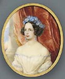 | Keywords: Alexandra Nikolaevna, att. V.Hau (c. 1844, priv.coll.).jpg GRAND DUCHESS ALEXANDRA NICOLAEVNA OF RUSSIA 1825-1844 PRINCESS OF HESSE IN PALE BLUE-BORDERED WHITE DRESS DIAMOND SET SAPPHIRE DROP EARRINGS AND BLUE FLOWERS IN HER CURLING DARK HAIR; GOLD-TASSELLED BORDERED DRAPED RED CURTAIN PILLAR AND SKY BACKGROUND http //www christies com/lotfinder/lot/attributed-to-vladimir-hau-circa-1844-grand-4536681-details aspx from searchresults intObjectID 4536681 sid 50a30c63-0ef2-4239-af8b-66bfed8ea819 1844 ATTRIBUTED TO VLADIMIR HAU Alexandra Nikolaevna of Russia Alexandra Nicolayevna of Russia by I Winberg Files uploaded by Shakko from various sources Private collections of Russian art Images from Christie's Portraits of Russian rulers by Vladimir Hau Female portraits by Vladimir Hau Portrait miniatures of Russian rulers PD-old |