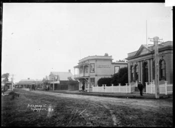 | Keywords: blackandwhite monochrome outdoor architecture photo border building black and white Alexandra Street, Te Awamutu, circa 1910s. Photograph taken by William Archer Price. On the right of the street are the Bank of New Zealand, Bathurst's Commercial Hotel, and Gifford & Dunkley's store. Inscriptions: Inscribed - Photographer's title on negative -bottom left: Alexandra St. Te Awamutu. 1714. Quantity: 1 b&w original negative(s). Physical Description: Dry plate glass negative 6.5 x 4.5 inches Alexandra Street, Te Awamutu, ca 1910. Price, William Archer, 1866-1948 :Collection of post card negatives. Ref: 1/2-001238-G. Alexander Turnbull Library, Wellington, New Zealand. natlib.govt.nz/records/22790835 Alexandra Street, Te Awamutu, circa 1910s. Photograph taken by William Archer Price. On the right of the street are the Bank of New Zealand, Bathurst's Commercial Hotel, and Gifford & Dunkley's store. Inscriptions: Inscribed - Photographer's title on negative -bottom left: Alexandra St. Te Awamutu. 1714. Quantity: 1 b&w original negative(s). Physical Description: Dry plate glass negative 6.5 x 4.5 inches Alexandra Street, Te Awamutu, ca 1910. Price, William Archer, 1866-1948 :Collection of post card negatives. Ref: 1/2-001238-G. Alexander Turnbull Library, Wellington, New Zealand. natlib.govt.nz/records/22790835 |