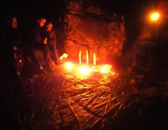 | Keywords: Alfablot at boulder without flash.jpg en Forn Sed Álfablót at boulder The picture is taken at an álfablót held by the Gothenburg kindred Godthiod at 7th November 2009 at a boulder at Getsjön i e Goat Lake Tunge parish Ale hundred Västergötland Lilla Edet municipality Västra Götaland Sweden Álfablót is a Norse ceremony honoring the dead ancestors and elves and it's corresponding to the Celtic Samhain The boulder has a tradition of being thrown by a giant It has the number Tunge 36 1 in Swedish National Heritage Board's database over ancient monuments Godthiod was a kindred within the Swedish Asatru Assembly now Forn Sed Sweden The altar consists of three cult images of the three Norns Urð Verðandi and Skuld the Norse goddesses of Fate and three lighted cressets on the ground These are placed in front of the boulder The boulder is used as a blóting stone during the ceremony and is thus receiving libations To the left are some of the participants In the background to the right is a lighted torch In the foreground we can see the strange pattern in the bedrock of the place The photo is taken without a flash before the ceremony Samfundet Forn Sed Sverige Altaret utgörs av tre gudabilder föreställande de tre nornorna Urd Verdandi och Skuld och tre tända marschaller på marken Dessa står framför flyttblocket Flyttblocket används som blotsten ceremonien och mottager då libationsoffer Till vänster sitter några av deltagarna I bakgrunden till höger lyser en fackla I förgrunden ser man det märkliga mönster berget har på platsen Fotot är taget utan blixt under förberedelserna för blotet 10180300360001 RAÄ-nr Tunge 36 1 own Gunnar Creutz 2009-11-07 ImageNote 1 355 231 100 87 775 599 2 The three Norns Urðr Verðandi and Skuld ImageNoteEnd 1 ImageNote 2 318 30 236 205 775 599 2 Flyttblock jättekast ImageNoteEnd 2 Forn Sed Sweden Photos of paganism by User Achird Seasonal ceremonies November 2009 in Sweden Neopagan altars Glacial erratics with traditions in Sweden Public domain files by Gunnar Creutz |
