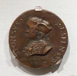 | Keywords: Alfonso I d'Este (and Lucrezia Borgia), by unknown Mantuan, designed c. 1502 - Chazen Museum of Art - DSC02121.JPG en Exhibit in the Chazen Museum of Art University of Wisconsin-Madison Madison Wisconsin USA This artwork is old enough so that it is in the public domain Photography was permitted in the museum without restriction 2013-07-21 13 34 40 own Daderot cc-zero Uploaded with UploadWizard Medals in the Chazen Museum of Art Alfonso I d'Este | ||||