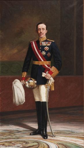 | Keywords: Alfonso XIII con uniforme de capitán general (Museo del Prado).jpg Retrato del rey Alfonso XIII de España 1886-1941 vestido con el uniforme de capitán general del ejército español y luciendo numerosas condecoraciones como la venera de la Orden del Toisón de Oro y la gran cruz de la Orden de Carlos III 1913 oil canvas Size cm 135 240 Institution Museo del Prado Depositado en el Teatro Real de Madrid España https //www museodelprado es/coleccion/obra-de-arte/alfonso-xiii-con-uniforme-de-capitan-general/de1165ba-c8fb-4f10-8974-29181277fbb2 searchid 2345a668-845b-93f7-2706-2a04053c93f6 object history exhibition history credit line accession number P08107 https //content2 museodelprado es/imagenes/Documentos/imgsem/de/de11/de1165ba-c8fb-4f10-8974-29181277fbb2/4a5327f8-f74c-4360-bee4-f210c78141a9 jpg PD-old-100 Portrait paintings of Alfonso XIII of Spain Nicolás Aquino 20th-century portrait paintings in the Prado Museum Interior of Teatro Real Madrid 1913 paintings in Spain Uploaded with UploadWizard |