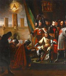 | Keywords: Alfonsoxprioral.jpg es Óleo sobre tela obra de José María Rodríguez Losada 1852 situado arriba y delante de la capilla de la Patrona en la Iglesia Mayor Prioral de El Puerto de Sta Maria Representa al rey castellano Alfonso X recibiendo del alguacil moro de Jerez las llaves de la aldea de Alcanate Al fondo el Castillo de San Marcos y sobre la torre del homenaje aparición de la Virgen de los Milagros escudo de la Ciudad Fue restaurado a finales de 2010 own Menesteo 1852 PD-old-100-1923 Iglesia Mayor Prioral en El Puerto de Santa María History of El Puerto de Santa María Alfonso X of Castile in paintings José María Rodríguez de Losada Ermine clothing in art 19th-century paintings in Andalusia 1852 paintings from Spain 1852 paintings in Spain |