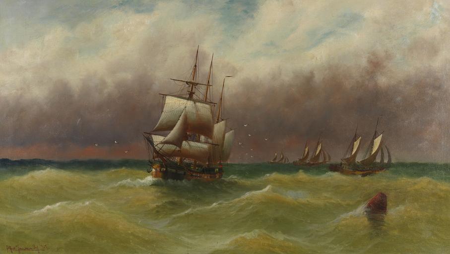 | Keywords: Alfred Jensen - Dreimastbark und mehrere Schoner auf bewegter See (1907).jpg Artwork Creator Alfred Jensen 1907 oil canvas cm 66 5 119 object history Alfred Jensen Prof 1907 ~ lower left signature / date http //www kettererkunst de/kunst/kd/details php obnr 114000308 anummer 418 Ketterer Kunst Ž Ž 17 /18 11 2014 lot 114000308 Other versions PD-old-auto-1923 1935 DEFAULTSORT Jensen Alfred; Marine; Ketterer 2014 Alfred Jensen marine painter Oil paintings of watercraft 20th-century sailing ships in paintings Oil paintings of seascapes Images from Ketterer Kunst |