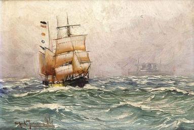 | Keywords: Alfred Jensen - Segler.jpg Artwork Creator Alfred Jensen oil canvas cm 23 5 34 5 object history Alfred Jensen Prof ~ lower left signature http //www bolland-marotz de/de/jensen_alfred/l/2938 aid 4 Lstatus 0 Accid 107 currentpos 78 Bolland Marotz 08 11 2014 lot 1079 Other versions PD-old-auto-1923 1935 DEFAULTSORT Jensen Alfred; Marine; Bolland Marotz 2014 Alfred Jensen marine painter Oil paintings of watercraft 19th-century sailing ships in paintings Oil paintings of seascapes | ||||
