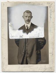 | Keywords: smithsonian institution smithsonianinstitution alfred noyes alfrednoyes suit retouched halo portrait man business attire businessattire classic black and white blackandwhite 3-buttonsuit 3buttonsuit vest moustache english poet englishpoet period photo periodphoto sepia archives of american art archivesofamericanart black and white Description: Portrait of Noyes in suit. Identification on verso (handwritten): A.D. Noyes. Noyes, Alfred, 1880-1958 Creator/Photographer: Unidentified photographer Medium: Black and white photographic print Dimensions: 26 cm x 20 cm Date: c. 1920 Persistent URL: www.aaa.si.edu/collections/images/detail/alfred-noyes-2304 Repository: Archives of American Art Collection: Charles Scribner's Sons Art Reference Department Records, c. 1865-1957 Accession number: aaa_charscrs_4311 Description: Portrait of Noyes in suit. Identification on verso (handwritten): A.D. Noyes. Noyes, Alfred, 1880-1958 Creator/Photographer: Unidentified photographer Medium: Black and white photographic print Dimensions: 26 cm x 20 cm Date: c. 1920 Persistent URL: www.aaa.si.edu/collections/images/detail/alfred-noyes-2304 Repository: Archives of American Art Collection: Charles Scribner's Sons Art Reference Department Records, c. 1865-1957 Accession number: aaa_charscrs_4311 |