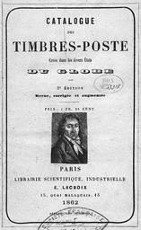 | Keywords: Alfred Potiquet Catalogue des timbres-poste 1862.jpg fr Alfred Potiquet Catalogue des timbres-poste émis dans les différents pays du globe 2e édition mars 1862 Le catalogue Potiquet est le premier au monde Sa première édition paraît le 21 décembre 1861 Il peut être consulté ici dans sa deuxième édition parue en mars 1862 éditée par P Lacroix On remarquera la note de l'éditeur dénonçant deux parutions copiant le travail de M Alfred Potiquet Ce catalogue n'est pas illustré et ne comporte pas de cotations en Alfred Potiquet Catalog of Postage Stamps Issued in Different Countries of the World 2nd edition March 1862 The Potiquet catalog is the first in the world Its first edition appeared on December 21 1861 It can be consulted here in its second edition published in March 1862 edited by P Lacroix Note the editor's note two releases denouncing copying the work of Mr Alfred Potiquet This catalog is not illustrated and contains no quotes ru Обложка книги Каталог почтовых ма ок выпущенных в азличных ст анах ми а Авто Альф ед Потике 2-е издание ма т 1862 1862 http //hpvexin free fr/index php cat histoire-et-patrimoine secteur magny commune magny-en-vexin genre documents hpvexin free fr author other versions Custom license marker 2015 10 12 PD-old Alfred Potiquet Stamp catalogues |
