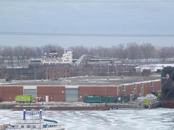 | Keywords: Algoma Navigator moored in the channel to Toronto's turning basin, 2014 01 01 -a.jpg The Algoma Navigator moored in the channel to Toronto's turning basin If you look closely you can see this vessel has a long boom Self-unloading bulk-carriers can swing out their booms to unload their cargoes Their holds have V-shaped bottoms with a conveyor belt below them When doors at the bottom of a hold opens the cargo starts to drop to the lower conveyor belt The cargo is carried to some kind of lifting devices which places it on the upper conveyor belt on the boom Older bulk carriers that are not self-unloading still carry cargo but self-unloading vessels are now more common Lake vessels which are not exposed to salt water can remain in service for decades longer than a saltie and a considerable number of older vessels have been retrofitted with self-unloading machinery If you look closely you can see a logo on the smokestack of a bear -- the logo of Algoma Central one of larger Canadian shipping lines own 2014-01-01 Geo Swan <span class signature-talk >talk</span> 43 38 56 68 N 79 21 51 15 W source exif_heading 2014 in water transport in Toronto Freighters in Toronto Algoma Navigator ship 1967 Frozen Toronto harbour Eastern Gap Taken with Panasonic Lumix DMC-ZS10 Photographs by Geo Swan ImageNote 1 1266 1295 110 80 4320 3240 2 Algoma Central uses a logo of a bear ImageNoteEnd 1 ImageNote 2 1856 1413 2426 203 4320 3240 2 The vessel's long self-unloading boom ImageNoteEnd 2 ImageNote 3 1510 1257 325 160 4320 3240 2 Ship's bridge ImageNoteEnd 3 ImageNote 4 3987 1645 316 1050 4320 3240 2 The bows of the Algoma Progress ImageNoteEnd 4 ImageNote 5 1190 1240 249 245 4320 3240 2 Smokestack ImageNoteEnd 5 |