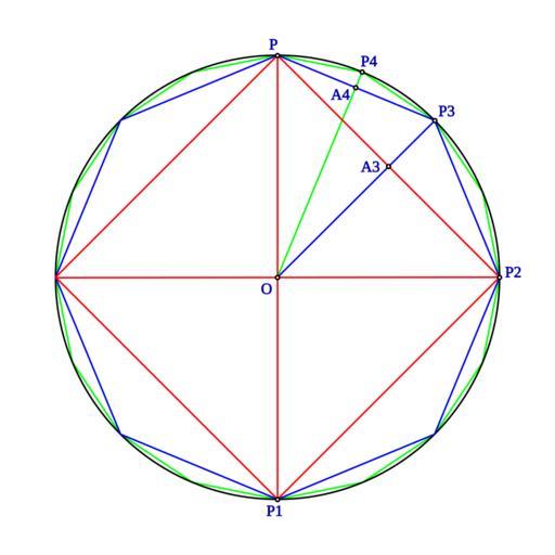 Keywords: Algoritmo de Pi.svg Polígono regular inscrito en una circunferencia para el calculo de Pi own 2007-04-13 User HiTe Dominio público Calculation of pi using the polygon method