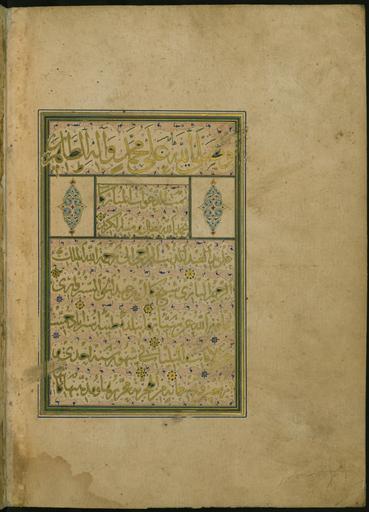 Keywords: 'Ali ibn Abi Talib - Illuminated Colophon - Walters W5798B - Full Page.jpg This folio from Walters manuscript W 579 contains this illuminated colophon written in Tawqi'/Riqa' script in gold ink it is stated that Shaykh Kamal ibn Abd al-Haqq al-Sabzawari completed the manuscript at Astarabad in 941 AH/AD 1534 islamic 1534 941 ink pigments laid paper cm 23 5 16 5 accession number W 579 8B 77626 Vizier al-Shahid 'Ali Pasha ca 1130 AH/AD 1717 mode of acquisition unknown waqf-seal impression of the Vizier dated 1130 AH/AD 1717 with the original shelf mark 1414 on fols 2a 2b and 3a Henry Walters Baltimore date and mode of acquisition unknown Walters Art Museum Henry Walters Acquired by Henry Walters Transliteration place of origin Astarabad present-day Gorgan Iran Walters Art Museum license 2D Prayer Book by Ali Walters MS 579 |