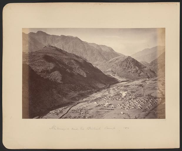 | Keywords: Ali Masjid and the British Camp, 1878 WDL11471.png Artwork ru Бе к Джон уме в 1900 году fr Burke John mort en 1900 en Burke John died 1900 zh 约翰·伯克,卒于 1900 年 pt Burke John falecido em 1900 ar بيرك، جون، توفي 1900 es Burke John fallecido en 1900 ru Али асджид и б итанский лаге ь 1878 год fr Ali Masjid et le campement britannique 1878 en Ali Masjid and the British Camp 1878 zh 1878 年的阿里清 寺和英军营 pt Ali Masjid e o acampamento britânico 1878 ar مسجد علي والمعسكر البريطاني، 1878 ru Эта фотог афия б итанского лаге я возле Али асджида входит в альбом едких исто ических фотоснимков на кото ых изоб ажены люди и места связанные со Вто ой англо-афганской войной Али асджид асположенный в самом узком месте Хайбе ского п охода стал пе вой точкой захваченной в начале войны Полевой а мией долины Пешава под командованием гене ала сэ а Сэмюэля Б ауна 1824 1901 гг на пути к Кабулу С ажение за Али асджид состоялось 21 нояб я 1878 года Победоносным б итанским и индийским войскам гене ала Б ауна п отивостояли афганская а мия и п едставители афганских племен под п едводительством Голям Хайде -хана Г обница в Али асджиде видна над палаточным лаге ем на заднем плане в самой п авой части снимка а в левой его части можно увидеть возвышающуюся на ве шине го ы к епость Вто ая англо-афганская война началась в нояб е 1878 года когда Великоб итания опасаясь как ей казалось астущего влияния России в Афганистане вто глась в эту ст ану с те ито ии Б итанской Индии Пе вый этап войны закончился в мае 1879 года подписанием Гандамакского догово а позволившего афганцам сох анить внут енний суве енитет однако заставившего их уступить конт оль над внешней политикой своей ст аны б итанцам Военные действия возобновились в сентяб е 1879 года после антиб итанского восстания в Кабуле и окончательно заве шились в сентяб е 1880 года ешающей битвой за Кандага Данный альбом включает по т еты б итанских и афганских лиде ов и военнослужащих фотог афии п остых афганских людей изоб ажения б итанских военных лаге ей военных действий ст оений пейзажей к упных и небольших го одов Все изоб аженные на фотоснимках места находятся на те ито ии сов еменных Афганистана или Пакистана в то в емя бывших частью Б итанской Индии Около т ети п едставленных в альбоме фотог афий выполнены Джоном Бе ком около 1843 1900 гг д угая т еть сэ ом Бенджамином Симпсоном 1831 1923 гг а оставшаяся часть несколькими д угими фотог афами Авто ы некото ых фотоснимков неизвестны Возможно что составителем альбома был один из членов б итанского п авительства в Индии однако это п едположение не подтве ждено Каким об азом альбом попал в Библиотеку Конг есса неизвестно <br>Афганские войны; К епости и фо тификационные соо ужения; Великоб итания А мия; Хайбе ский п оход Афганистан и Пакистан ; Военные лаге я; Го ные п оходы; Го ы; Усыпальницы; Палатки fr Ce cliché du campement britannique à Ali Masjid est extrait d'un album de photographies historiques rares de personnalités et de sites associés à la seconde guerre anglo-afghane Ali Masjid situé à l'endroit le plus étroit du col de Khyber fut la première conquête du général sir Samuel Browne 1824 1901 lors de sa marche avec la Force de campagne de la vallée de Peshawar vers Kaboul au début de la guerre La bataille se déroula le 21 novembre 1878 et les troupes indiennes et britanniques victorieuses menées par Browne affrontèrent les tribus et l'armée afghanes dirigées par Gholam Hyder Khan Le sanctuaire d'Ali Masjid est visible à l'arrière-plan dans la partie droite de la photographie entre le campement de tentes et le fort au sommet de la colline à sa gauche La seconde guerre anglo-afghane commença en novembre 1878 lorsque la Grande-Bretagne se sentant menacée par l'influence croissante des Russes en Afghanistan envahit le pays depuis l'Inde britannique La première phase de la guerre s'acheva en 1879 avec le traité de Gandamak qui permit aux Afghans de conserver leur souveraineté nationale mais les força à céder le contrôle de leur politique étrangère 