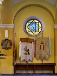 | Keywords: Alians PL LublinChurchStMichaelTheArchangel,2009 08 10,P8100116.jpg en Round stained-glass window in the side nave church of St Michael the Archangel at Bronowice w Lublinie The first on the right of the entry pl Witraż okrągły nawy bocznej w kościele św Michała Archanioła na Bronowicach w Lublinie Pierwszy po prawej od wejścia own Alians PL 2009-08-10 Michael the Archangel Church in Lublin Stained glass windows in Lublin | ||||