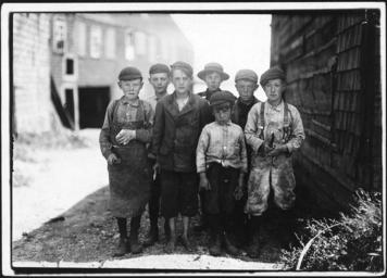 | Keywords: All these boys are cutters in a Canning Co. - NARA - 523450.tif Scope and content All these boys are cutters in a Canning Co Ages range from 7 to 12 They live near the factroy 7 year old boy in front Byron Hamilton has a badly cut finger but helps his brother regularly Behind him is his brother George 11 years old He cut his finger half off while working They and many youngsters said they were always cutting themselves George earns a 1 some days usually 75 cents Some of the others say they earn a 1 when they work all day At times they start at 7 A M work all day until midnight but the work is very irregular Eastport Me General notes 523450 Local identifier 102-LH-2420 Department of Commerce and Labor Children's Bureau 1912 - 1913 NARA-Author Hine Lewis Wickes 1874-1940 Photographer 1122914 <br /> Still Picture Records Section Special Media Archives Services Division NWCS-S National Archives at College Park 8601 Adelphi Road College Park MD 20740-6001 1911-08-12 Record group Record Group 102 Records of the Children's Bureau 1908 - 2003 Record group ARC 431 National Child Labor Committee Photographs taken by Lewis Hine compiled ca 1912 - ca 1912 documenting the period 1908 - 1912 Series ARC 523064 File unit File unit ARC Variant control numbers NAIL Control Number NWDNS-102-LH-2420 yes Other versions <gallery> File All_these_boys_are_cutters_in_a_Canning_Co _-_NARA_-_523450 tif tif File All_these_boys_are_cutters_in_a_Canning_Co _-_NARA_-_523450 jpg jpg </gallery> NARA-cooperation PD-USGov Child labor in the United States NARA TIF images with categorized JPGs |