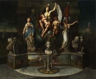| Keywords: Allegorie auf die Werte der Verfassung c1800.jpg Allegorie auf die Werte der Verfassung nach der Französischen Revolution oil canvas 80 5 x 100 cm http //hampel-auctions com/ Hampel Auctions ~ 1800 Creator Anonymous PD-old Images from Hampel Auctions 19th-century oil on canvas paintings Liberté Égalité Fraternité French Revolution in art 19th-century allegorical paintings 19th-century paintings location missing | ||||