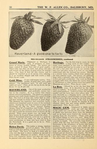 | Keywords: Allen's book of berries (16204069299).jpg Magic Gem grows <br> the largest foliage we have ever seen Many of the <br> leaves measure 4 inches across the center and nearly <br> 6 inches in length The unusually large leaves to- <br> gether with the long leaf-stems furnish a perfect <br> protection to the abundance of berries this variety <br> produces No other variety with which we are <br> acquainted will produce more large berries per acre <br> than the Magic Gem The berries are not only <br> large and abundant but they also are beautifully <br> formed and are distinctly cone-shaped The berries <br> are highly colored being dark red with glossy sur- <br> face and bright yellow seed which are imbedded in <br> the surface just deep enough to produce a beautiful 43767886 148699 77584 Page 30 Text http //www biodiversitylibrary org/page/43767886 1917 10 5962/bhl title 77584 Allen Co Salisbury Md ; Henry G Gilbert Nursery and Seed Trade Catalog Collection Biodiversity Heritage Library Allen's book of berries 1917 Garden Stories Allen Co Salisbury Md Catalogs Maryland Nurseries Horticulture Nursery stock Salisbury Strawberries U S Department of Agriculture National Agricultural Library bhl page 43767886 dc identifier http //biodiversitylibrary org/page/43767886 bhlGardenStories BHLinbloom allen co salisbury md nurseries horticulture u s department of agriculture national agricultural library bhlgardenstories bhlinbloom Information field Flickr posted date ISOdate 2015-01-28 Check categories 2015 August 24 CC-BY-2 0 BioDivLibrary https //flickr com/photos/61021753 N02/16204069299 2015-08-24 06 54 21 cc-by-2 0 PD-old-70-1923 Allen's book of berries Photos uploaded from Flickr by Fæ using a script |