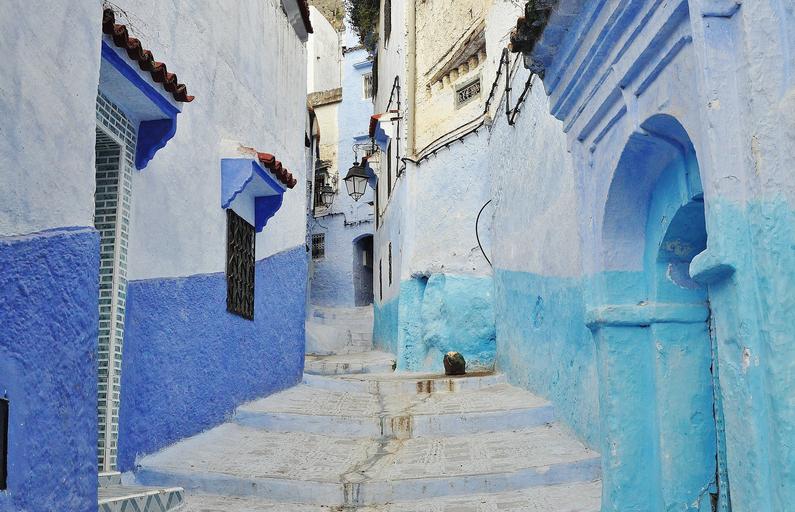 Keywords: alley town old blue houses homes narrow ancient morocco background summer
