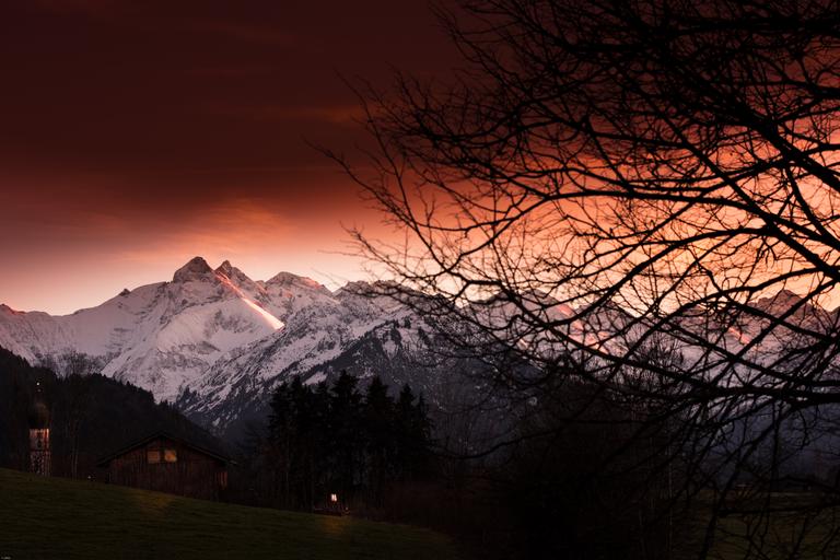 Keywords: allgäu autumn forest mountains evening light mystical alpine twilight sunset evening sky dusk gloomy sky colors darkness sky surreal atmosphere