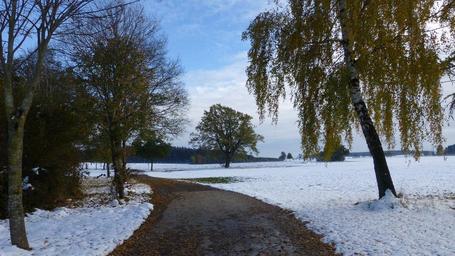 Keywords: allgäu autumn snow rest loneliness trees road