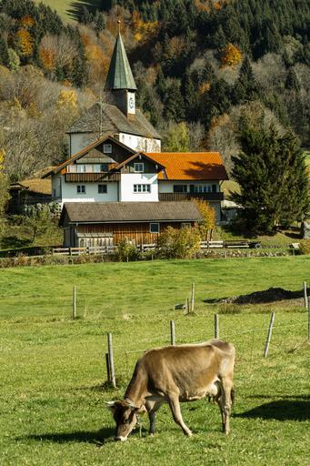 Keywords: allgäu village cow autumn agriculture landscape farmhouse idyllic rest
