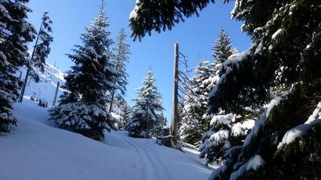 Keywords: allgäu winter snow forest trees sky blue sun