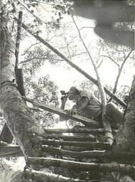 | Keywords: Allied artillery observation post at Buna AWM photo 014019.jpg AWM caption PAPUA BUNA ARTILLERY CLEARS WAY FOR INFANTRY NINETY FEET ABOVE THE GROUND A FORWARD OBSERVATION OFFICER AT BUNA WATCHES THE FALL OF SHELLS FROM AN AUSTRALIAN 25 POUNDER BATTERY HIS POST IS 300 YARDS FROM ENEMY PILLBOXES WHICH THE BATTERY SILENCED AS JAPS RAN FROM TRENCH TO TRENCH HIS DIRECTIONS ENABLED GUNNERS TO SPEED THEM ON THEIR WAY WITH 25 LB SHELLS THE GUNNERS SMILED WHEN AFTER THE O P CALLED FOR 2 ROUNDS GUNFIRE ON TO A POSITION INTO WHICH 4 JAPS HAD RUN FOR SHELTER HE TOLD THEM DAM BAD SHOOTING ONE OF THE BASTARDS GOT UP FROM UNDER THOSE SHELLS AND RAN AWAY THEY KNEW HE REALISED THEIR SHOOTING WAS REMARKABLY ACCURATE NEGATIVE BY G SILK 014019 Australian War Memorial 1942 PD-Australia PD-US-1996 World War II in the Pacific New Guinea campaign |