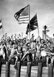 | Keywords: Allied POWs at Aomori 1945-08-29.JPEG Gaunt Allied prisoners of war at Aomori camp near Yokohama cheer rescuers from the U S Navy http //www defenseimagery mil/imagery html guid 44e780c8f9d684ced7627f1ae3d863a900d616c8 1945-08-29 US Navy PD-USGov-Military-Navy Files by User BrokenSphere World War II prisoners of war Uncategorized 2014 April 18 |