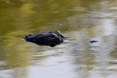 Keywords: alligator head eye wildlife nature water submerged looking reptile predator tropical