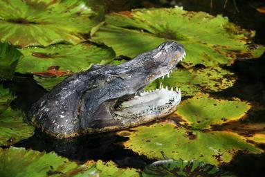 Keywords: alligator sculpture fake gator lily pads teeth pond wildlife floating