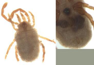 Keywords: Allotanaupodus2.jpg en adult female Allotanaupodus sp gravid self-photographed S E Thorpe 2009-10-16 NEW ZEALAND WO Maungatautari south cell inside cell transect 2 pitfall trap D 18 Dec 2008-20 Jan 2009 C H Watts Allotanaupodus