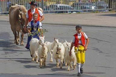 Keywords: almabtrieb désalpe alp output appenzell customs innerrhoden appenzeller costumes farmers canton of appenzell sennen goats appenzell goat cows city village switzerland