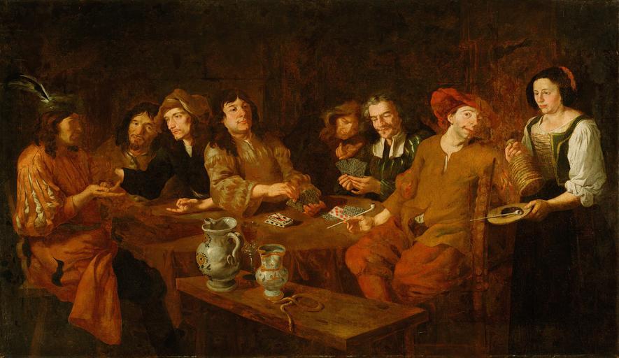 | Keywords: Almanach - Kvartopirci.jpg  Artwork creator Almanach 3quarter other date century 17 oil canvas cm 163 281 Institution National Gallery of Slovenia NGS0628 <gallery>Almanach - Kvartopirci izrezan avtoportret jpg</gallery> PD-Art-100 Almanach 17th-century paintings in the National Gallery of Slovenia 17th-century genre paintings People playing card games in art 17th-century oil on canvas paintings in Slovenia 17th-century portrait paintings in Slovenia Group portrait paintings Group portraits with 8 persons Genre paintings in Slovenia |