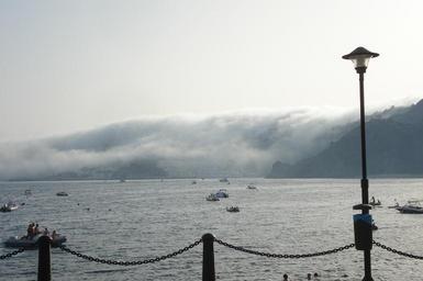 Keywords: almuñecar fog lake sea boats mountains pier