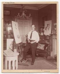 | Keywords: smithsonian institution smithsonianinstitution interior studio studio portrait studioportrait portrait artist man tie easel alonzo kimball alonzokimball sepia chandeliers sepiachandeliers fireplace painter 1920 archives of american art archivesofamericanart Description: Kimball in his studio standing in front of an easel. Identification on front (handwritten): Kimball, Alonzo. Kimball, Alonzo M., 1874-1923 Creator/Photographer: Unidentified photographer Medium: Black and white photographic print Dimensions: 24 cm x 19 cm Date: c. 1920 Persistent URL: www.aaa.si.edu/collections/images/detail/alonzo-m-kimball... Repository: Archives of American Art Collection: Charles Scribner's Sons Art Reference Department Records, c. 1865-1957 Accession number: aaa_charscrs_4283 Description: Kimball in his studio standing in front of an easel. Identification on front (handwritten): Kimball, Alonzo. Kimball, Alonzo M., 1874-1923 Creator/Photographer: Unidentified photographer Medium: Black and white photographic print Dimensions: 24 cm x 19 cm Date: c. 1920 Persistent URL: www.aaa.si.edu/collections/images/detail/alonzo-m-kimball... Repository: Archives of American Art Collection: Charles Scribner's Sons Art Reference Department Records, c. 1865-1957 Accession number: aaa_charscrs_4283 |