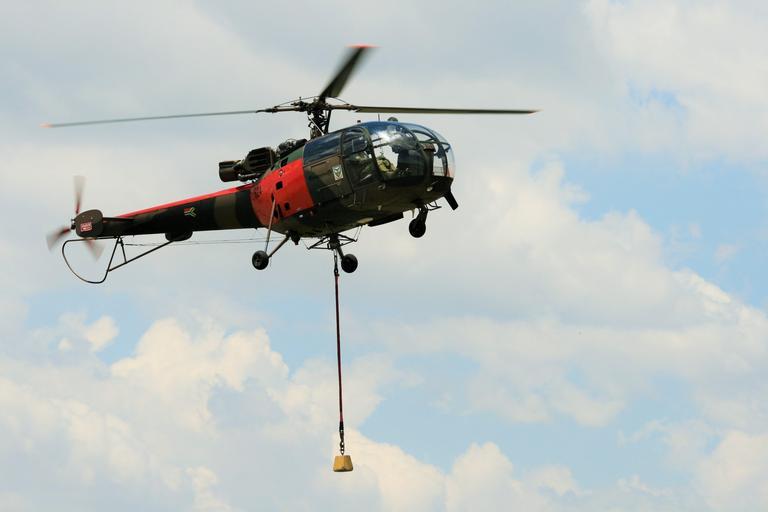 Keywords: alouette iii helicopter hovering lowering weight display south african air force museum