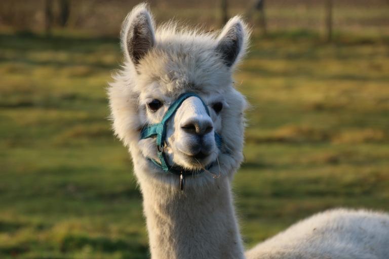 Keywords: alpaca happy meadow graze grass nature animal landscape animal world peaceful attention in the free green rest idyll fresh wool curious