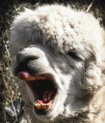 Keywords: alpaca head animal animal portrait wildlife photography mimic tongue yawn wool fluffy attention view peru