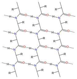 | Keywords: Alpha sheet bonding schematic-color.svg Schematic diagram of hydrogen bonding in the alpha sheet protein structural motif Created using http //www acdlabs com/download/chemsk html ACD/ChemSketch 10 0 and Inkscape ;Legend red w Oxygen atoms blue w Nitrogen atoms Own work after Pauling L Corey R B 1951 The pleated sheet a new layer configuration of polypeptide chains Proc Natl Acad Sci USA 37 251 “6 PMID 14834147 <br>Created by uploader upon request by Opabinia regalis 2007-01-20 Fvasconcellos Peptides Protein folding |
