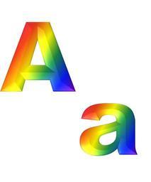 Keywords: alphabet a abc rainbow bright shiny gradient font type typography set collection text letter word spell character upper lower case print style education 3d design light