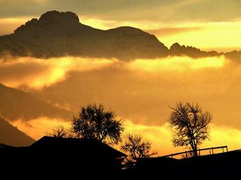 Keywords: alpine back light abendstimmung mountains sun evening mist autumn trees bayern
