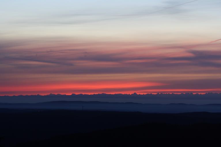 Keywords: alpine black forest panorama feldberg switzerland hairdryer distant view view outlook bernese oberland mountains sky landscape sunrise morgenrot red mood