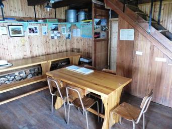 Keywords: alpine hut interior space table chair lounge mountain hut hut bank