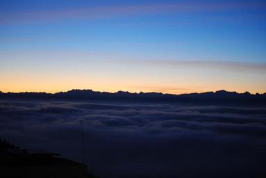 Keywords: alps sunrise sea of fog mountains fog morning mountain range summit top chain
