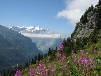 Keywords: alps switzerland mountains fireweed snow rocks nature mountain panorama